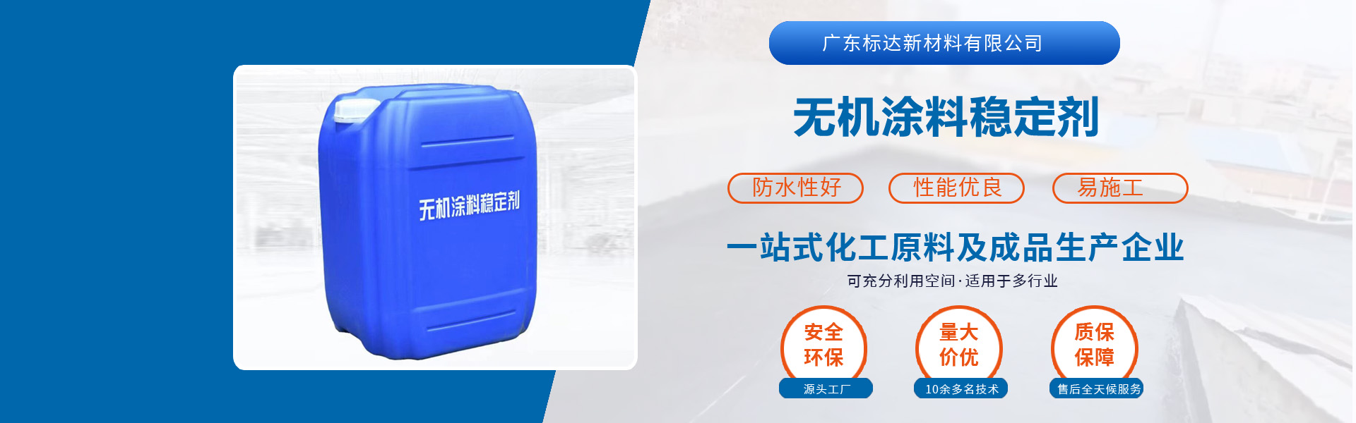 廣東標達新材料有限公司,位于東莞市保利都匯大廈,注冊資金人民幣1000萬元,我們是一家集研發、生產、銷售、售后為一體化,具備一站式服務能力的化工原料及成品生產企業。 公司主營產品標達彩砂固色劑、真石漆穩定增強劑、無機涂料、隔熱保溫涂料、無機材料改性穩定劑、瓷磚背膠和液體卷材等。我們擁有專業的化學化工方向的產品研發團隊,標準化管理的產品加工廠,以及完善的售后服務團隊。 我們本著“質量為先、管理為本、服務為魂”的企業理念,以品質求生存,以價格取信任,全力拼搏、開拓標達新材料公司的新域。...